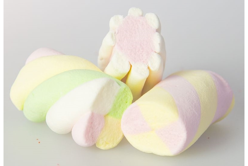 Bunt gemischte extrudierte Marshmallow in diversen Aromen